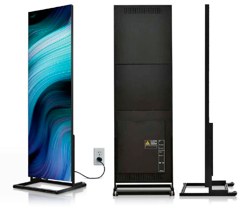 O Digital Rollup é um painel de leds que reproduz de forma automática vídeo, textos e fotos. É um painel autoportante (inclui base) e pode ser usado com um painel ou com múltiplos, aumentando desta forma o tamanho da imagem.